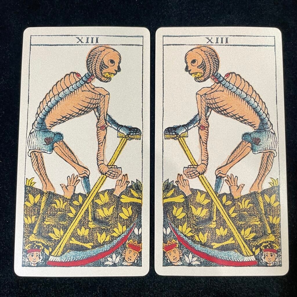 Some research has pointed out that it is possible that the No.13 card is facing left in the original Marseille Tarot, so here is an attempt to correct this.