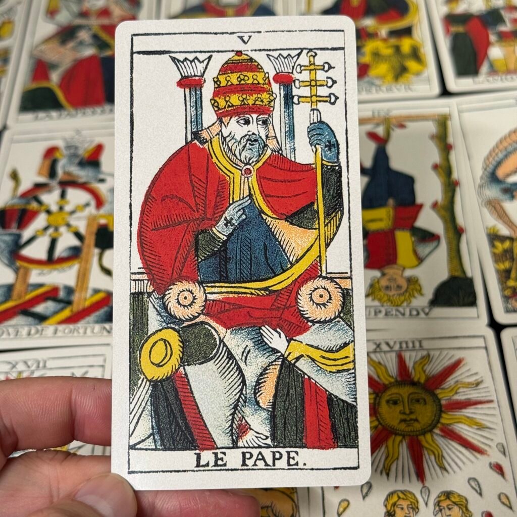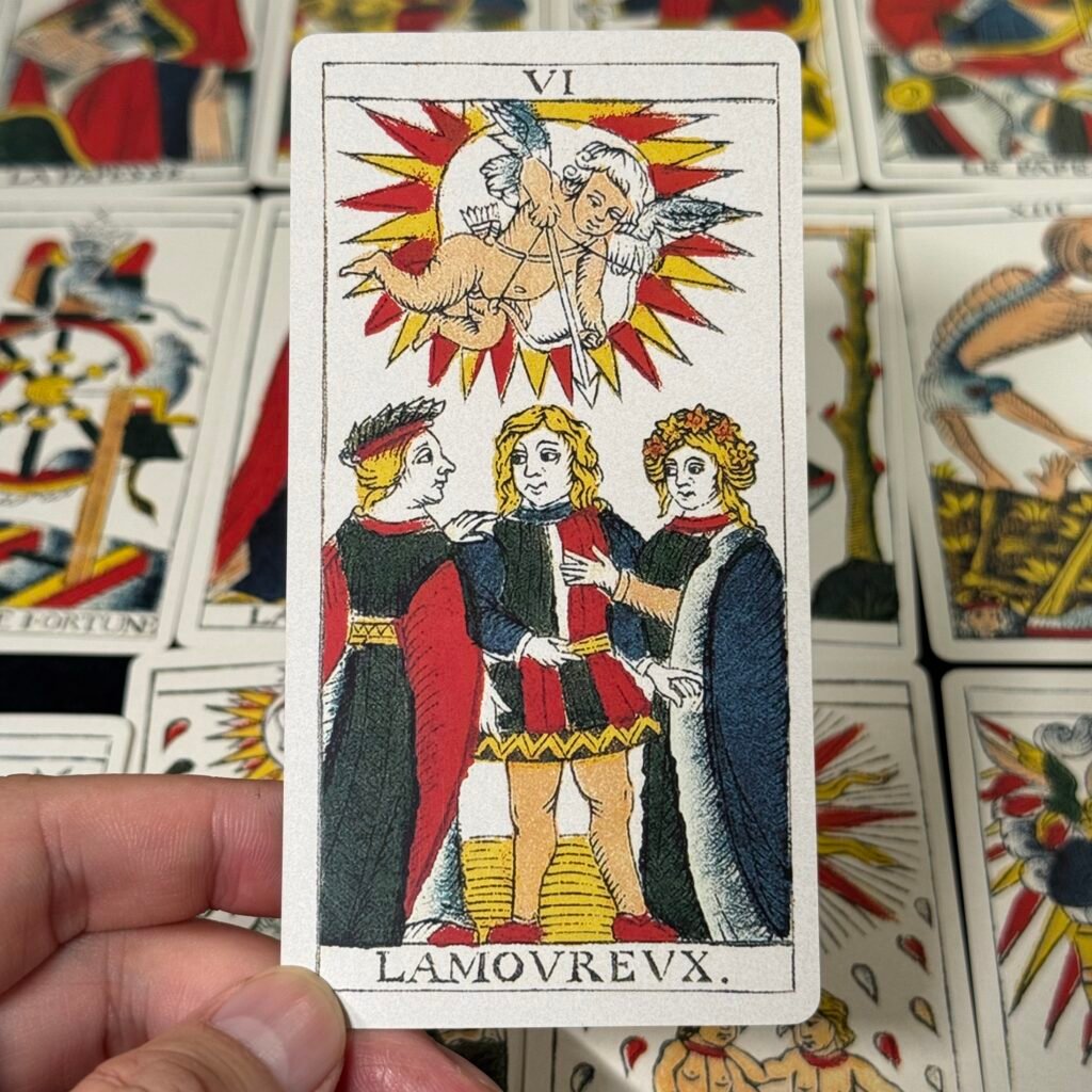 In the world of tarot cards, the Marseille tarot deck is undoubtedly the most unusual in terms of craftsmanship. Each face is hand–carved by the artisan on a wooden board, with fine, smooth lines and clear, vibrant outlines.